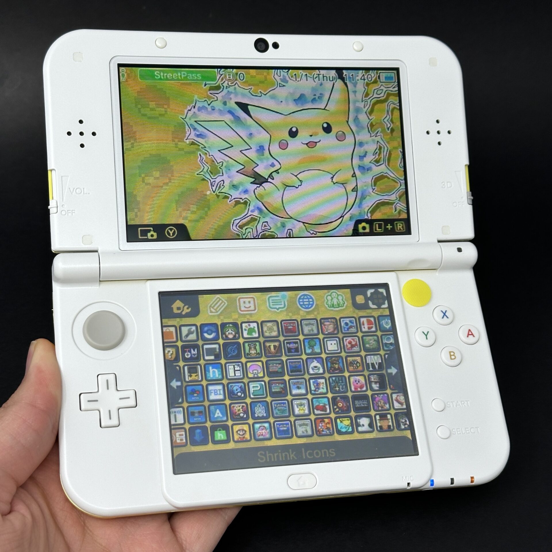 New Nintendo 3DS XL (64GB) – 600+ Games | White and Yellow Pikachu (DUAL IPS)