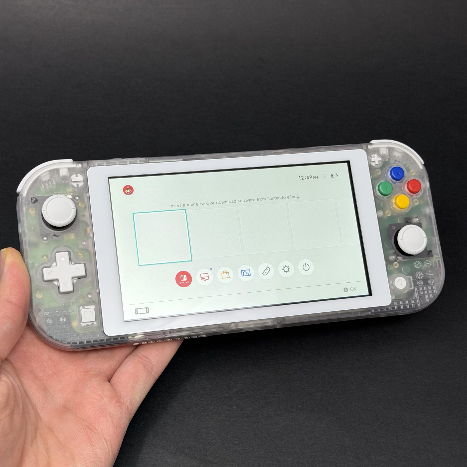 This is a brand new Switch Lite that was fully taken apart and the shell was replaced with a custom, high quality clear shell that Nintendo is not willing to do.